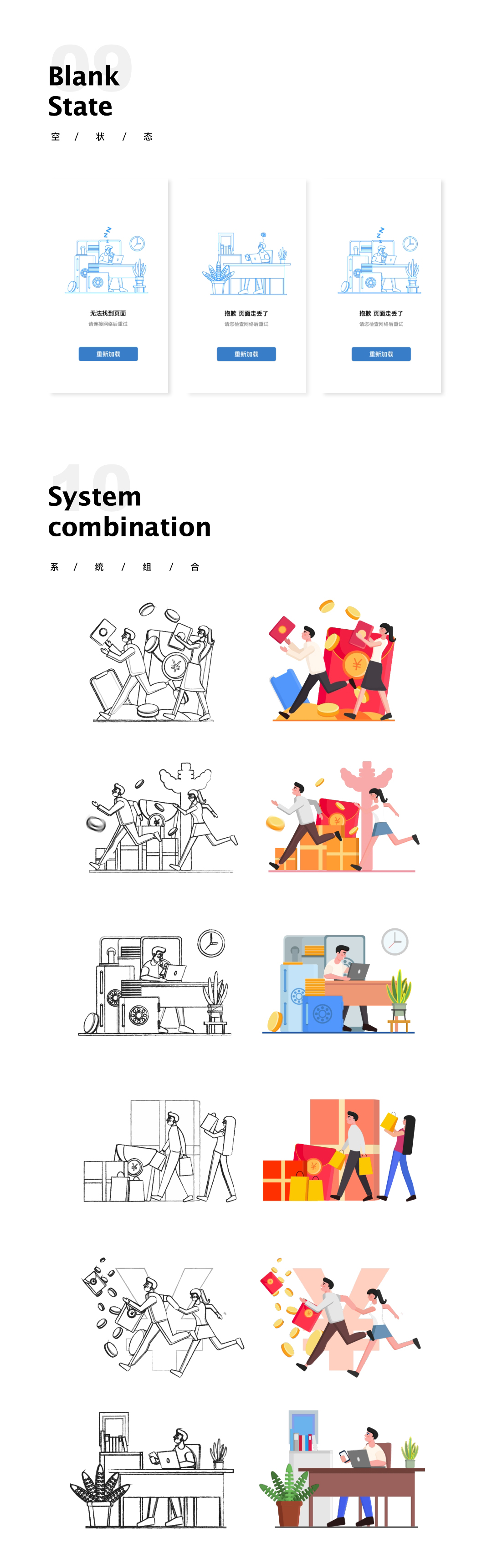 插畫在互聯(lián)網(wǎng)行業(yè)設(shè)計(jì)中有著大量地運(yùn)用,合理地使用插畫不僅能夠增強(qiáng)視覺感染力,塑造品牌認(rèn)知,而且可以提高用戶活躍度和活動(dòng)轉(zhuǎn)化率。組件化設(shè)計(jì)可以解決插畫風(fēng)格不統(tǒng)一以及設(shè)計(jì)產(chǎn)出效率低,缺少情感化設(shè)計(jì)等因素。