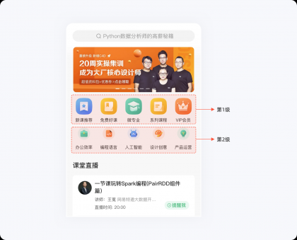 在設(shè)計過程中,如果沒有對功能層級進行劃分,一股腦地將所有功能入口平鋪的話,就需要用戶花費大量的時間和精力來查找需要的功能,無疑是一場災(zāi)難。我們可以通過??硕蓙韮?yōu)化界面功能布局,根據(jù)業(yè)務(wù)的重要性對功能入口進行分類組合,減少用戶的認(rèn)知及理解成本,以便快速達到目的。