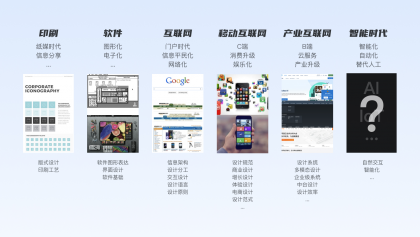 從信息交互的發(fā)展看,設(shè)計作為一種崗位,服務(wù)于商業(yè)在科技發(fā)展的不同時期,以平面設(shè)計為例,對設(shè)計師有著不同的要求: