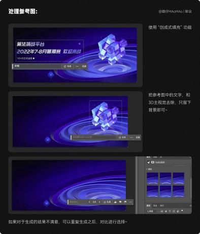生成的素材我們需要先用 PS 處理一下,背景素材需要處理的地方:主視覺多余的部分需要?jiǎng)h掉、色調(diào)處理、圖片比例修改。