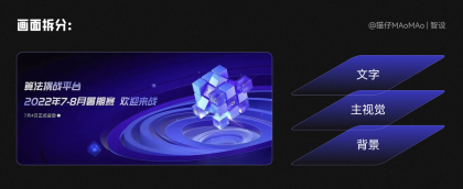 這一步考驗(yàn)的是設(shè)計(jì)師的審美和手活,我們需要把背景和主視覺素材,進(jìn)行視覺合成,其實(shí)也非常簡單:這里我定的主要色調(diào)是藍(lán)色+青色的光感,首先需要將色調(diào)整體統(tǒng)一;然后想要表現(xiàn)出玻璃質(zhì)感的通透,我們需要加上一些光感;最后文字排版出圖即可~