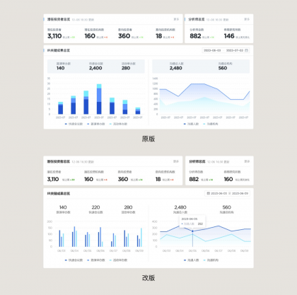 但重要不代表需要過(guò)度傾注和堆疊視覺(jué)元素,過(guò)度的設(shè)計(jì)會(huì)讓界面看起來(lái)有 “飛機(jī)” 敢,不僅不真實(shí)的印象產(chǎn)生了,還會(huì)顯得業(yè)余不夠自信。同時(shí)任何項(xiàng)目中表盤(pán)頁(yè)過(guò)度設(shè)計(jì)都會(huì)對(duì)整個(gè)項(xiàng)目造成負(fù)擔(dān),后續(xù)的頁(yè)面要怎么設(shè)計(jì)才能不和它產(chǎn)生隔閡,保持一致性。