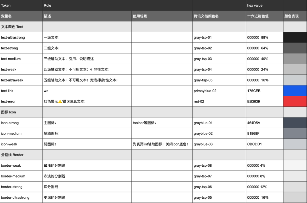 騰訊文檔顏色變量表 網上有很多關于如何使用軟件色彩樣式命名的方式來實現(xiàn) Token 應用的案例,但隨著 Figma 的 Variables 功能的上線,新的應用方式已經改寫。同時,Variables 可以實現(xiàn)除了色彩以外的更多屬性的更改,從而讓 Token 的應用范圍在設計軟件中進一步擴大(國產軟件跟上也勢在必行)。