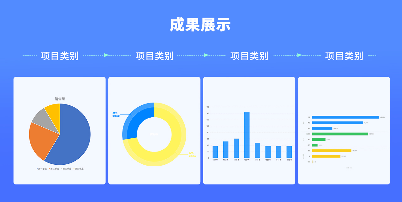 特別是針對需要要數(shù)據(jù)展示的同學(xué),請記得數(shù)據(jù)一定要突出,不要一直用字打出來,我們的評委沒有那么多精力去細(xì)看分析,這個(gè)時(shí)候需要你主動(dòng)展示,把數(shù)據(jù)單獨(dú)拿出來,分析并整理好,采用圖形化的方式去展示,比如對比的去展示,占比可以使用柱狀圖,餅圖,折線圖等,這樣的展示更直觀,更清晰明了,直接把結(jié)果灌輸給評委,把人當(dāng)成傻瓜,結(jié)論先行這點(diǎn)很重要。