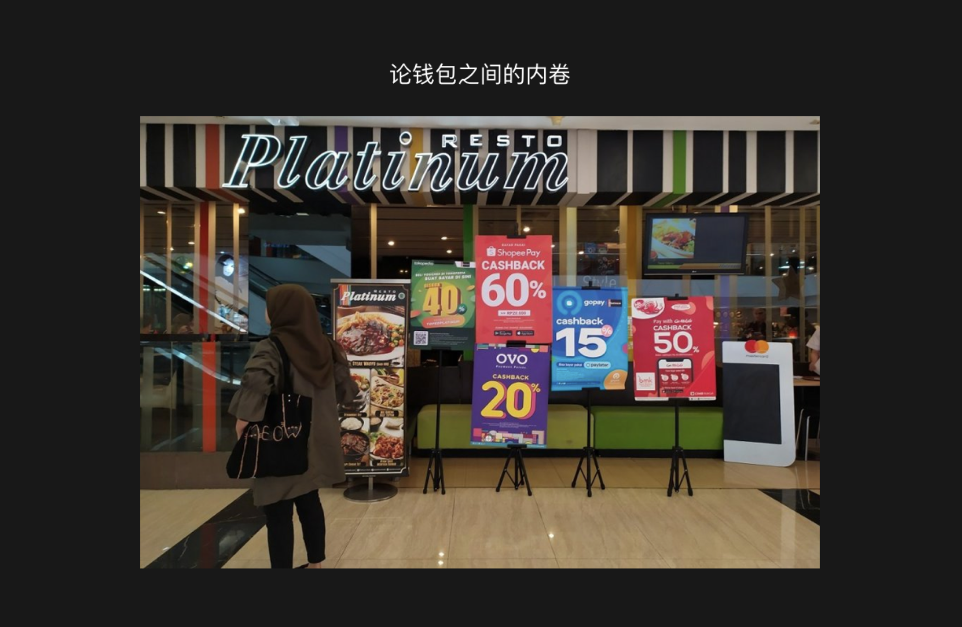 另外,當(dāng)?shù)氐闹Ц斗绞揭卜浅6鄻踊?,在印尼?dāng)?shù)兀梢钥吹綕M大街關(guān)于錢包的 cashback 廣告。目前印尼主流的錢包支付有 GO-pay、OVO、Dana、LinkAja、ShopeePay。