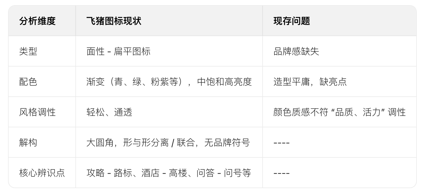 • 提取品牌基礎(chǔ)形(如飛豬傾斜矩形),簡化后融入圖標(biāo),避免 APP 同質(zhì)化(如長視頻 APP 去 logo 難區(qū)分案例)。