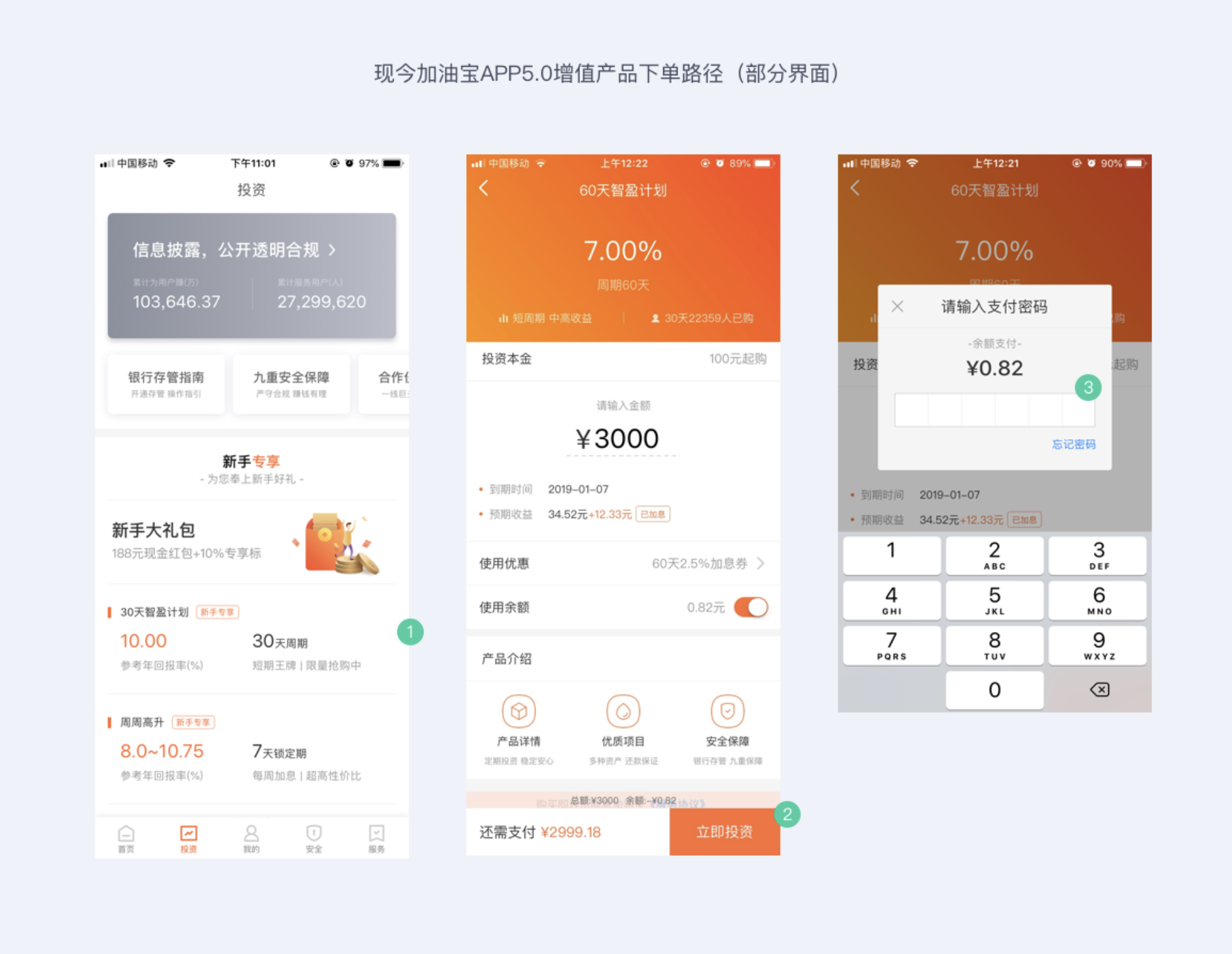 - 提升支付確認率:在數字鍵盤旁強調「安全加密」,重復平臺歷史兌付率 100%、銀行存管等安全保障。