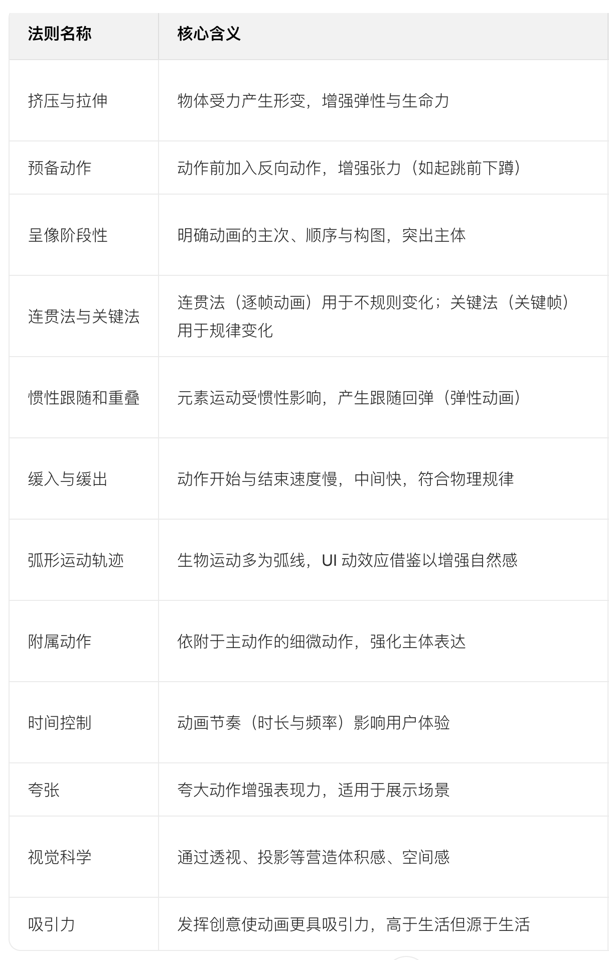 基于迪士尼 “動(dòng)畫十二基本法則”,結(jié)合 UI 場景的具體實(shí)踐如下: