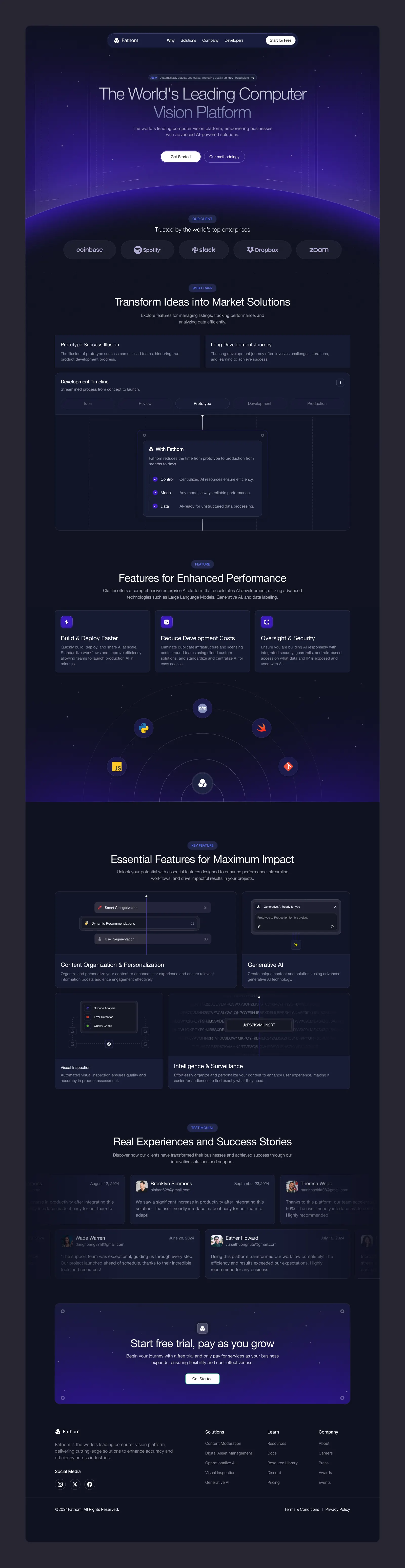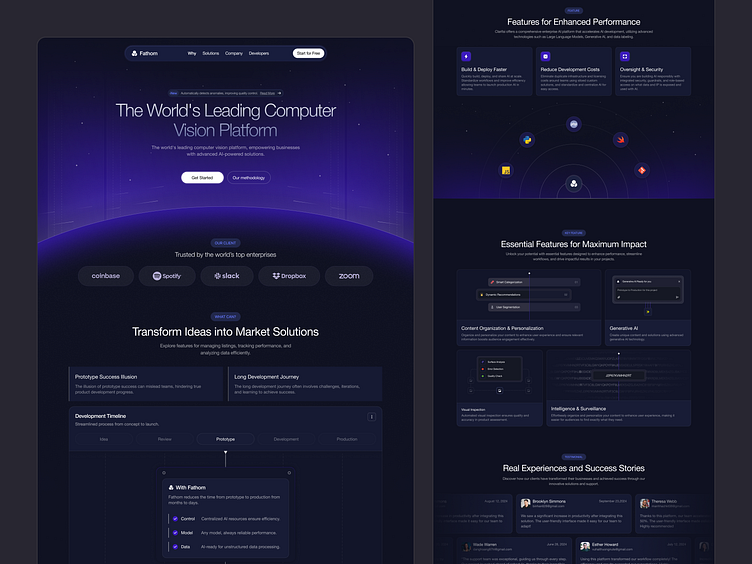 頂部:品牌定位(“The World's Leading Computer Vision Platform”)+ 快速行動(dòng)按鈕(CTA)。
