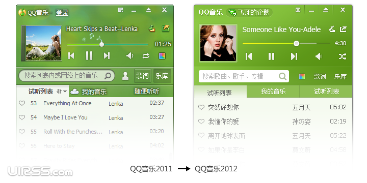 早在2011年7月,QQ音樂2011beta版的發(fā)布便確立了用品牌色–綠色,做為QQ音樂客戶端的默認(rèn)顏色,綠色代表和平、希望、生長和環(huán)保,對(duì)QQ音樂的品牌形象有積極的正面意義,此外,縱觀競品,常見的客戶端配色多為黑和藍(lán),用綠色也較利于提高產(chǎn)品的識(shí)別度。QQ音樂2012賀歲版的視覺,也是圍繞綠色和細(xì)節(jié)進(jìn)行全面的體驗(yàn)優(yōu)化。項(xiàng)目從去年12月31號(hào)開始,進(jìn)行了為期15天的設(shè)計(jì)和快速迭代。