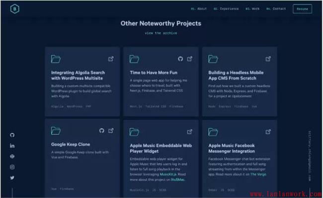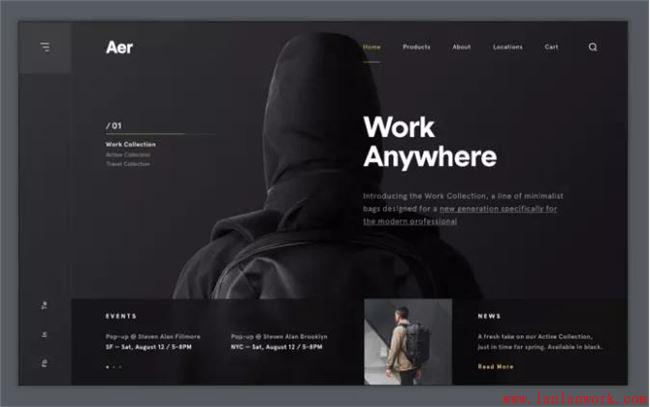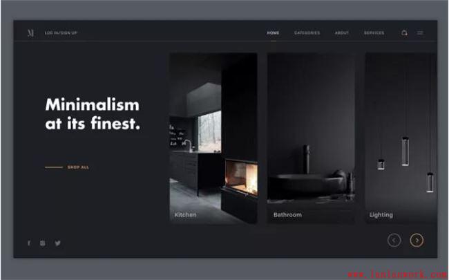 這兩個(gè)極簡主義的暗黑主題網(wǎng)站都使用了粗體字體。小心地使用單一強(qiáng)調(diào)色的陰影,以符合暗黑模式UI設(shè)計(jì)原則。