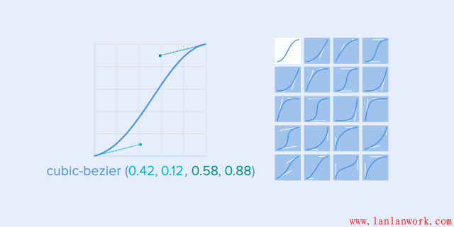 有一個立方貝塞爾函數(shù)常用來描述這種速度曲線。之所以叫立方是因為它是基于2個點來的。第一個點在坐標(biāo)軸中是(0,0)(左下),最后一個點是(1,1)(右上)。