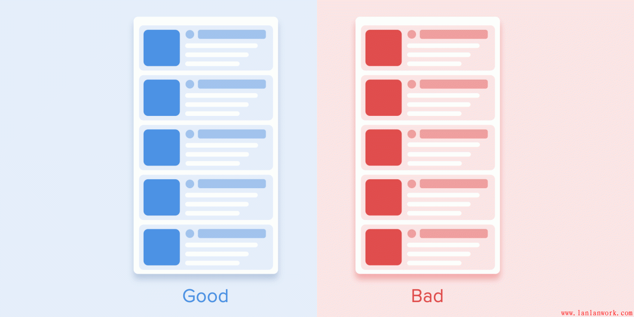 在這種情況下,所有卡片都按一個相同的流程出現(xiàn),引導(dǎo)用戶注意力在一個方向上,即從上到下。如果我們不按照這個順序,用戶的注意力就會分散,如果所有元素同時出現(xiàn)也會很糟糕。