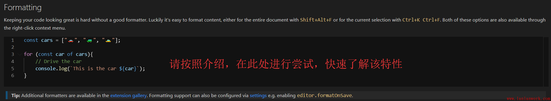 將格式化操作設(shè)置為自動化(保存時自動格式化整個文檔):Ctrl + , 輸入 editor.formatOnSave