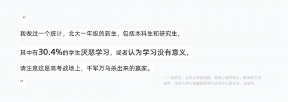 “教育是有滯后性的”作為老師或是家長,應(yīng)該對(duì)這句話很有感觸。學(xué)生在心智尚不成熟的階段,對(duì)于學(xué)習(xí)的動(dòng)機(jī)多來自外在。北京大學(xué),中國最高學(xué)府之一的教授就在訪談中表示: