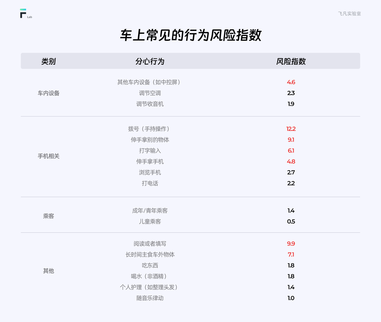 然而,需要注意的是,風險指數(shù)是一個相對的指標,不同的駕駛員可能會因其駕駛技能、經驗和個人特點而對同一行為產生不同的反應和風險感知。因此,駕駛員應該始終遵守交通規(guī)則和法律,盡量避免分心行為,以確保自己和他人的安全。