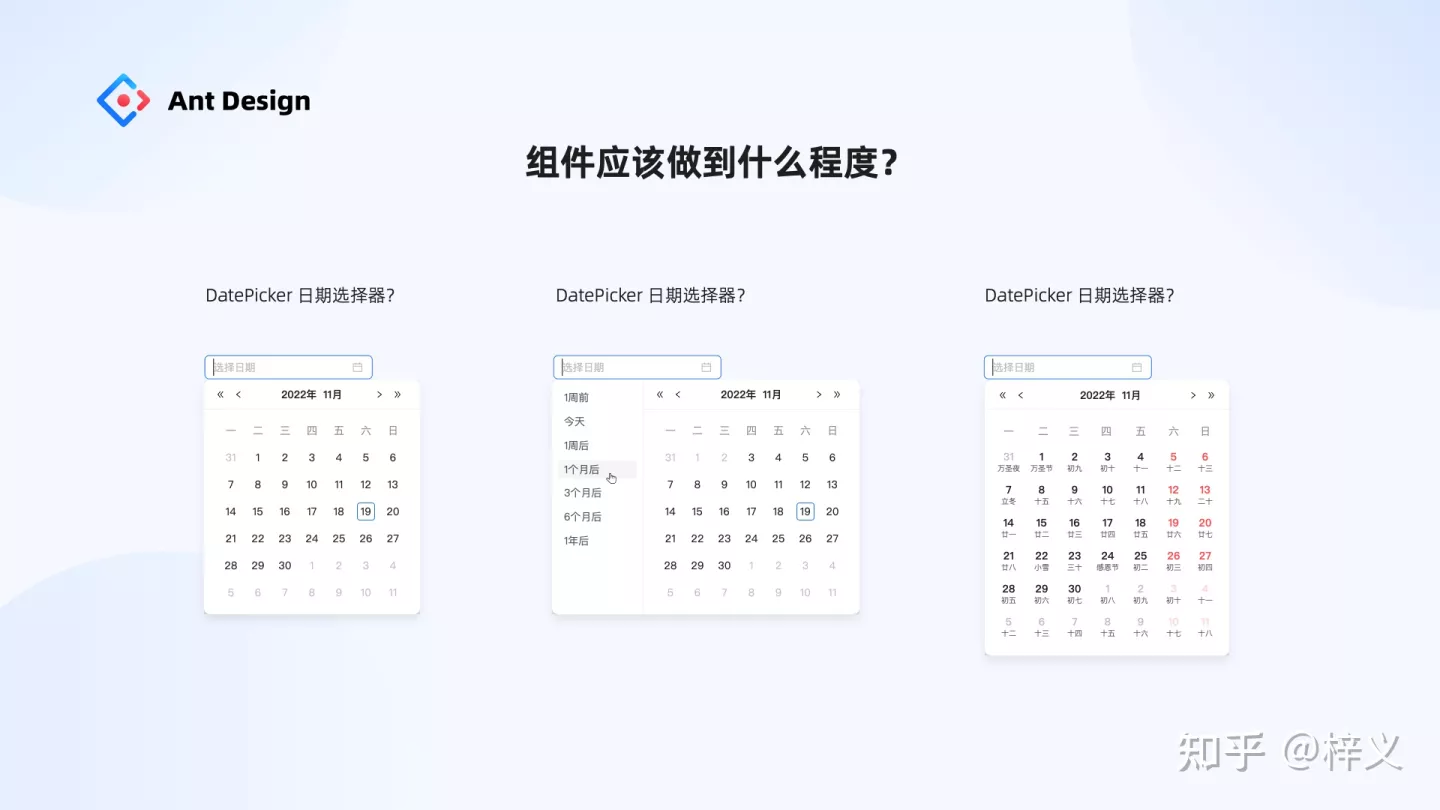 時間原因,就不再講解更多案例。這邊給大家預留一個小作業(yè),我們在 4.0 的時候升級了 3.0 日期選擇器的交互,請大家用元規(guī)范評估模型評估一下哪個方案更好?