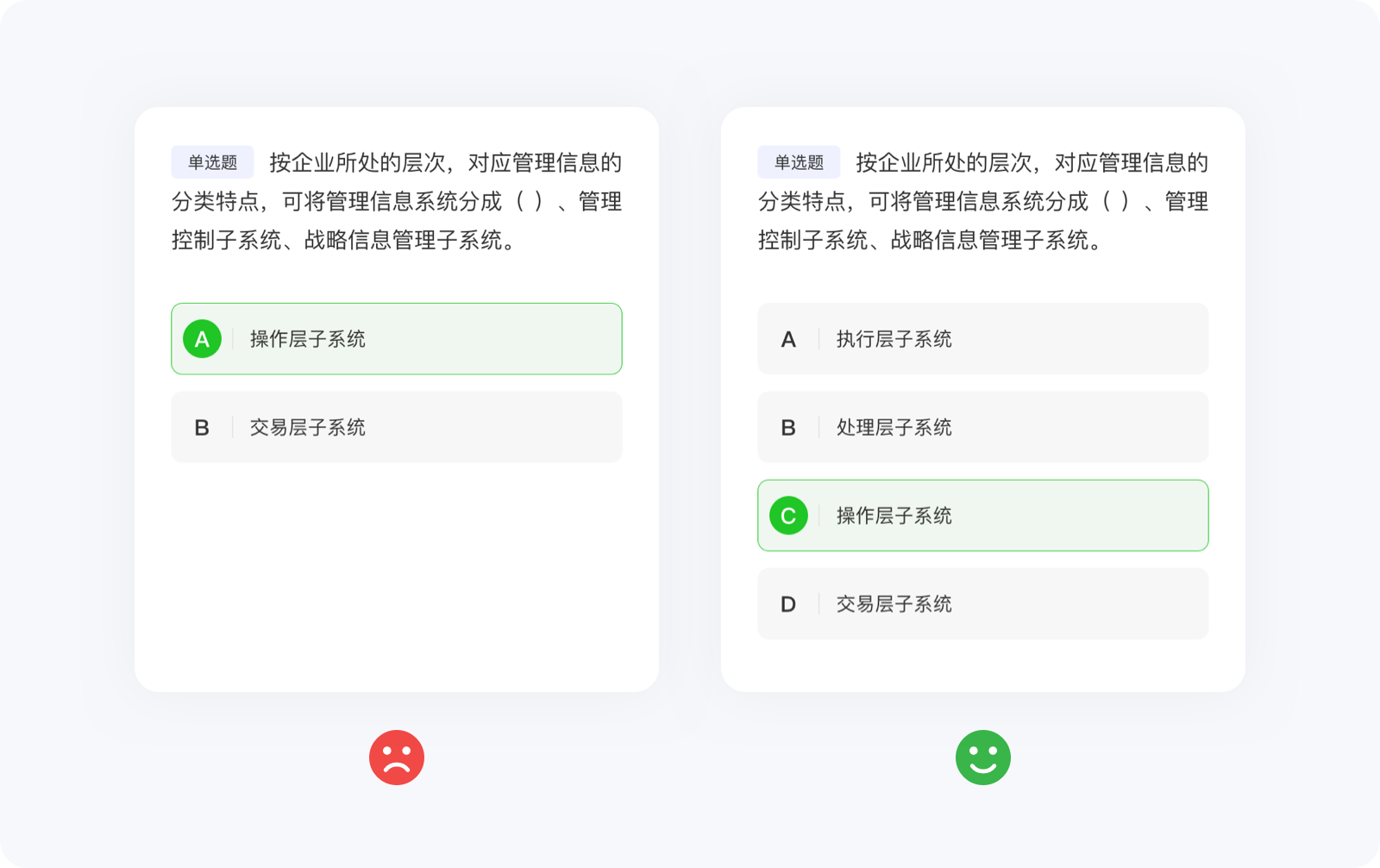 任何定律都有其自身的使用局限,所以也不要極度推崇??硕啥?jiǎn)化到抽象的地步。大部分情況下,??硕啥际怯迷诳山换ソ缑嬷械脑?,對(duì)于那些需要高度搜索、閱讀或?qū)W習(xí)刷題類的功能并不適用,因?yàn)樵O(shè)計(jì)師只能決定信息呈現(xiàn)的視覺效果,并不能決定內(nèi)容的質(zhì)量、類型與數(shù)量。例如,刷題類應(yīng)用,面對(duì)海量的選擇題,??硕呻m然失去價(jià)值,但并不影響設(shè)計(jì)師結(jié)合其他方法論將界面設(shè)計(jì)的更好,總不能強(qiáng)行使用??硕?,將選擇題刪減到只剩兩個(gè)(變成判斷題)選項(xiàng)吧。