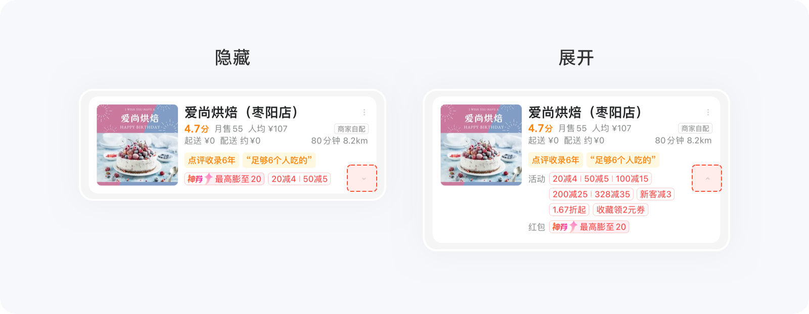 與刪除不同的是,隱藏并沒有刪減選項(xiàng)的數(shù)量,只展示部分常用、高頻的選項(xiàng),去除其他信息的干擾,方便用戶快速做出決策,而將其他不常用、低頻選項(xiàng)隱藏起來,在需要時(shí)系統(tǒng)自動(dòng)展示、或用戶手動(dòng)喚出。其實(shí),不管是交互四策略中的隱藏、還是??硕芍械碾[藏,其作用都是通過暫時(shí)性地減少信息數(shù)量來提升用戶操作效率。